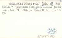 CHMIELOWSKI Janusz 1911 [Rec. z:] "Zakopane". Czasopismo poświęcone sprawom Zakopanego. Rok III. 1910.