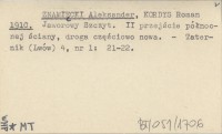 ZNAMIĘCKI Aleksander KORDYS, Roman. ; 1910 Jaworowy Szczyt. II przejście północnej ściany, droga częściowo nowa.