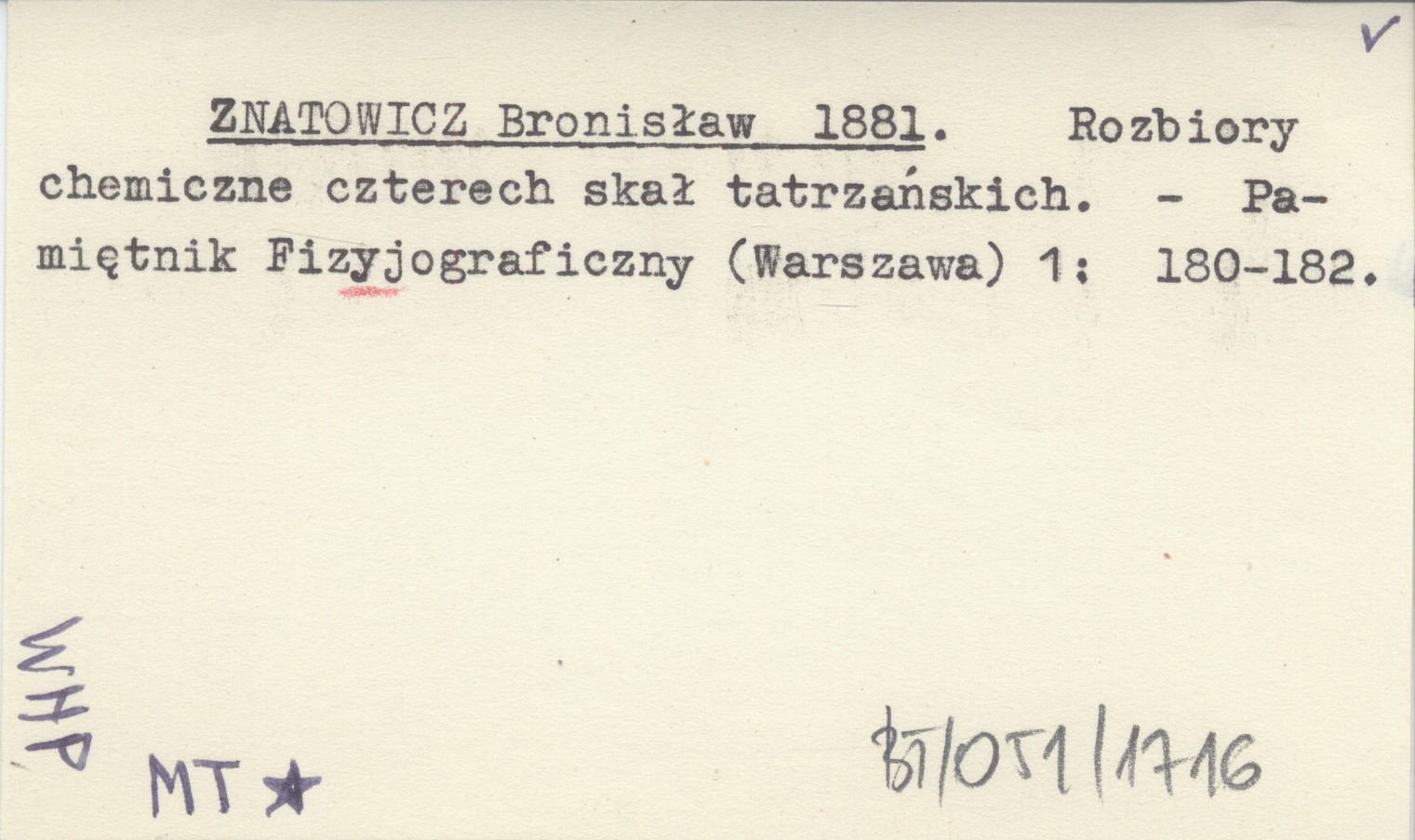 Rozbiory chemiczne czterech skał tatrzańskich.