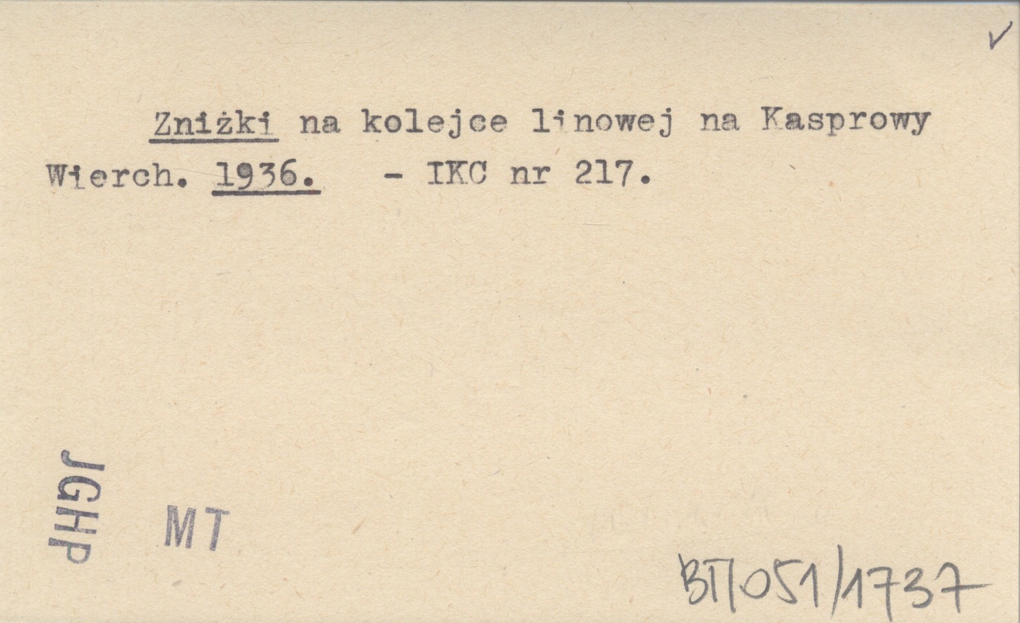 Zniżki na kolejce linowej na Kasprowy Wierch. 1936