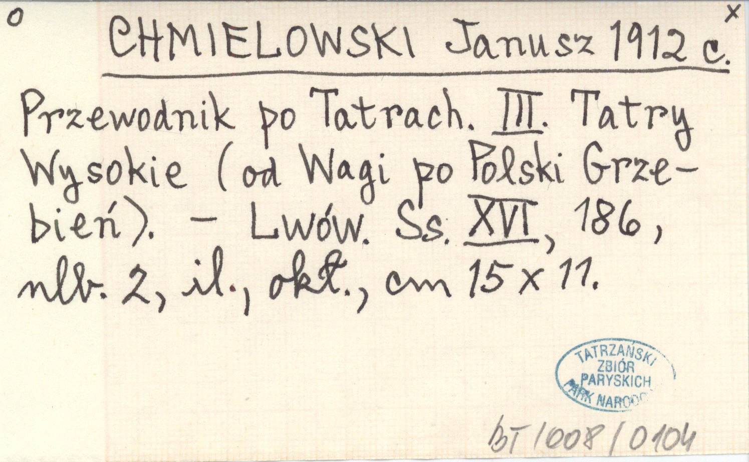 CHMIELOWSKI Janusz 1912 c Przewodnik po Tatrach. III. Tatry Wysokie (od Wagi po Polski Grzebień).