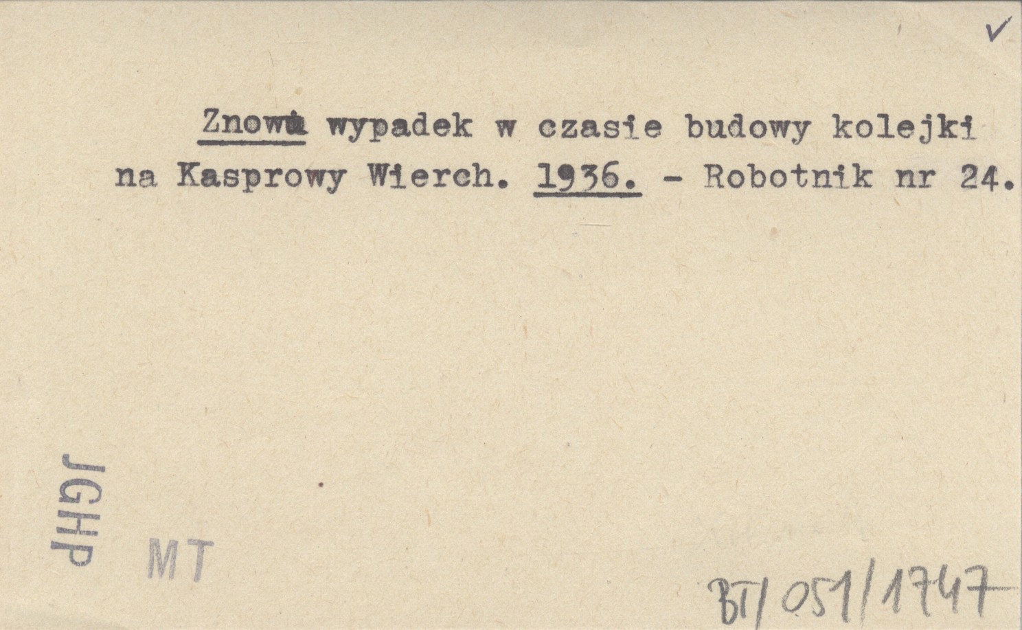 Znowu wypadek w czasie budowy kolejki na Kasprowy Wierch. 1936