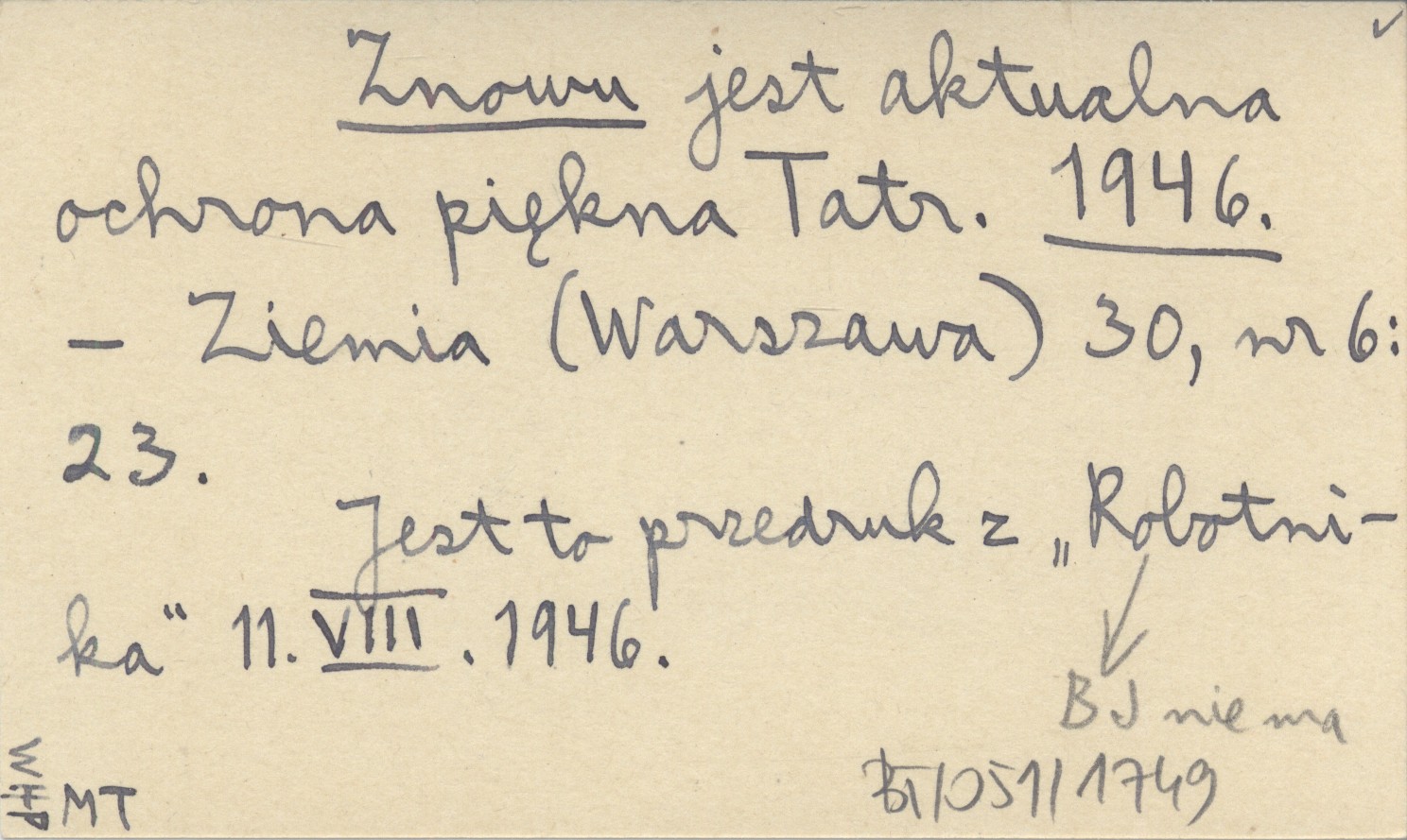 Ziemia (Warszawa) , 30, nr 6: 23. Jest to przedruk z "Robotnika" 11 VIII 1946. BJ nie ma.