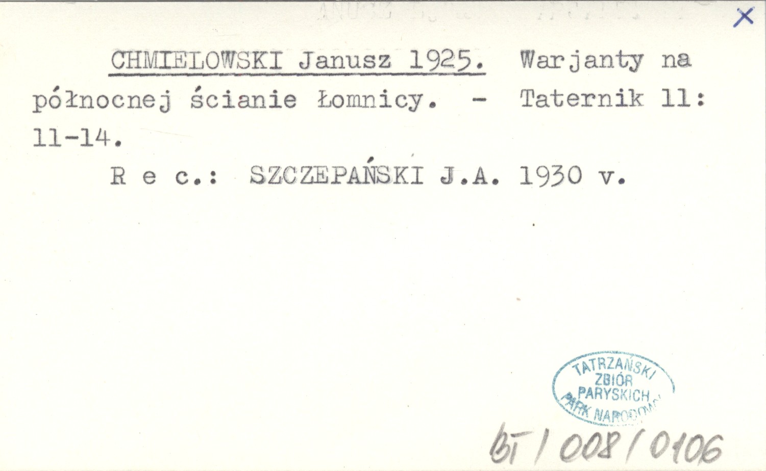 CHMIELOWSKI Janusz 1925 Warjanty na północnej ścianie Łomnicy.