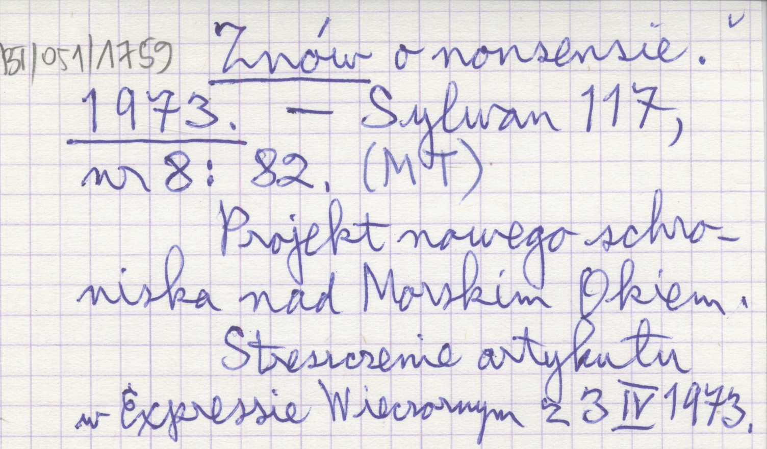 Sylwan, 117, nr 8: 82. Projekt nowego schroniska nad Morskim Okiem. Streszczenie artykułu w Expressie Wieczornym z 3 IV 1973.
