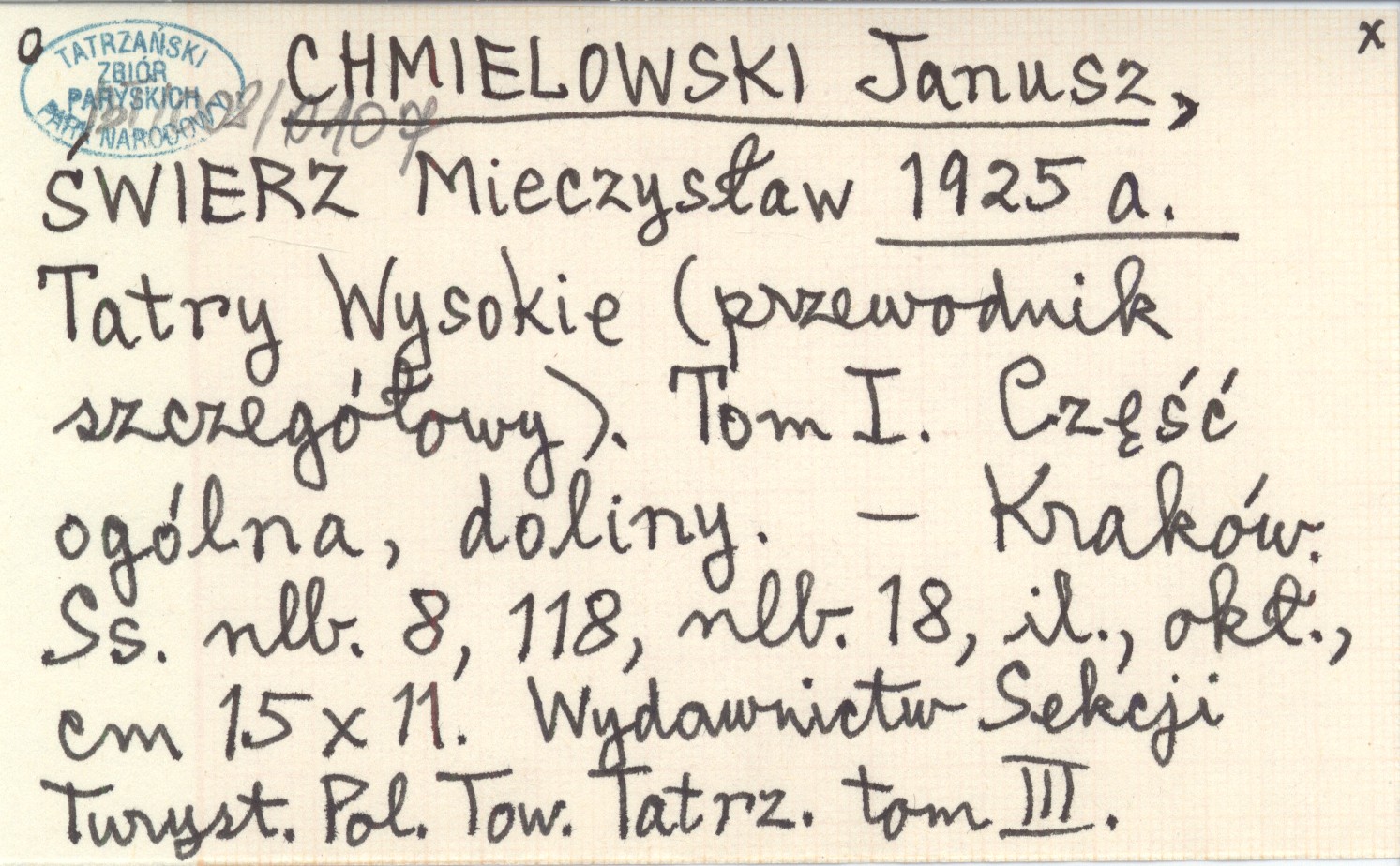 Kraków , [8], 118, [18], s., il., okł., 15x11 cm. Wydawnictw Sekcji Turystycznej Polskie Towarzystwa Tatrzańskiego tom III.