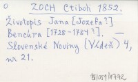 ZOCH Ctiboh 1852 Životopis Jana [Jozefa?] Bencúra [1728-1784?].