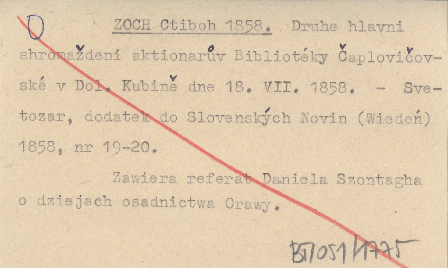 ZOCH Ctiboh 1858 Druhe hlavni shromaždeni aktionarův Bibliotéky Čaplovičovské v Dol. Kubině dne 18.VII.1858.