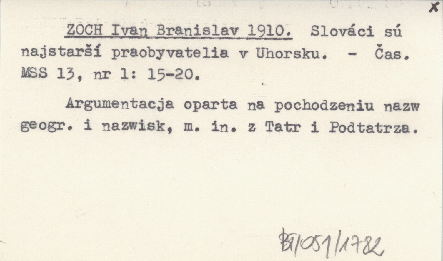 ZOCH Ivan Branislav 1910 Slováci sú najstarší praobyvatelia v Uhorsku.