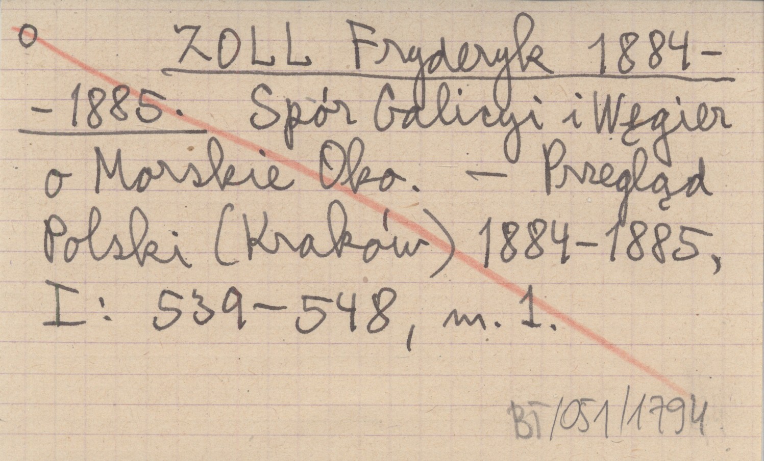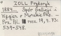 ZOLL Fryderyk 1884 Spór Galicyi i Węgier o Morskie Oko.