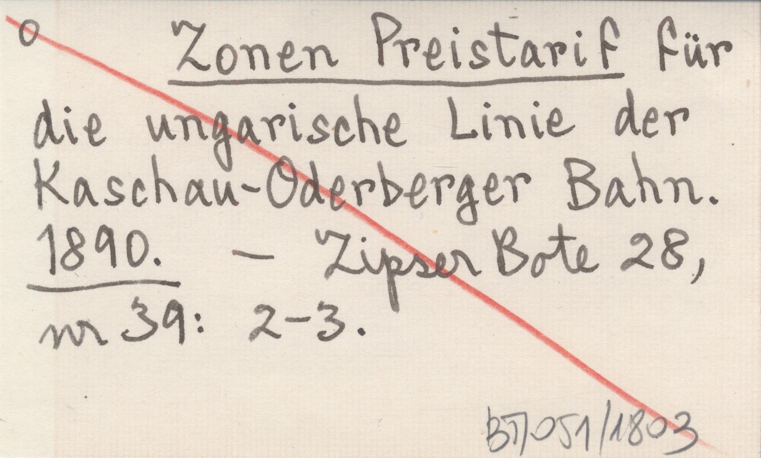 Zonen Preistarif für die ungarische Linie der Kaschau-Oderberger Bahn. 1890
