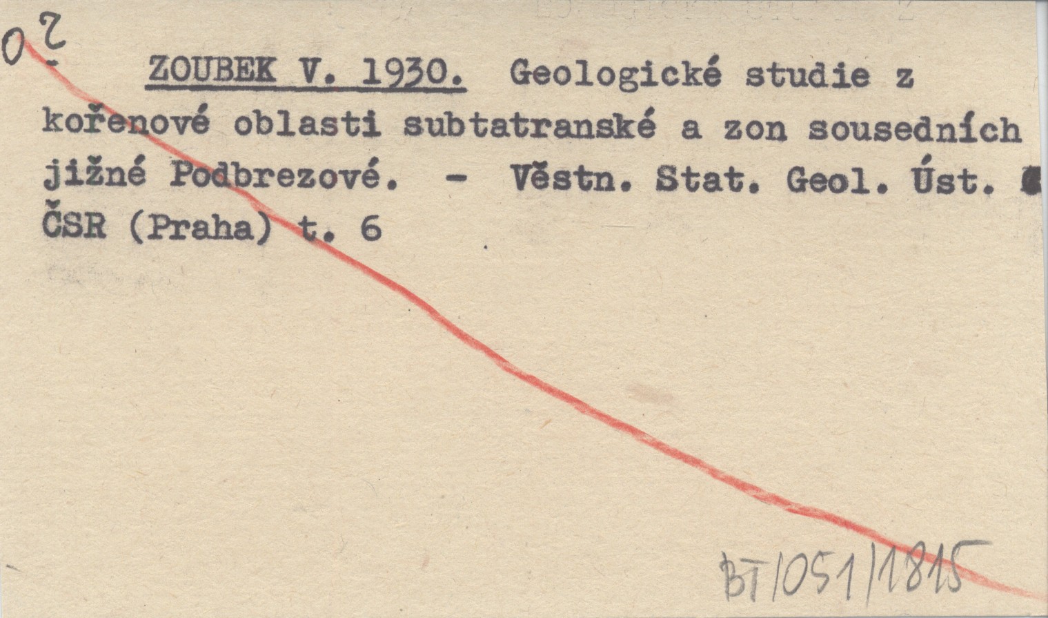 ZOUBEK V. 1930 Geologické studie z kořenové oblasti subtatranské a zon sousedních jiľné Podbrezové.