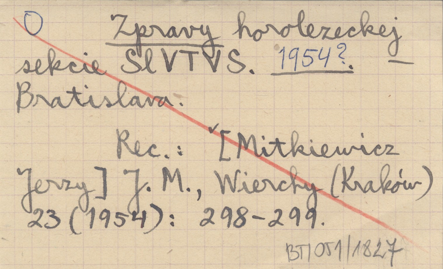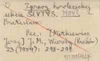 Bratislava , 9 nr (8 z.). REC: SCHRAMM R. W. 1956 e ; [MITKIEWICZ Jerzy] J. M., Wierchy (Kraków) 23 (1954): 298-299 ;