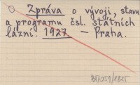 Zpráva o vývoji, stavu a programu čsl. státních lázní. 1927
