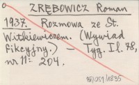 ZRĘBOWICZ Roman 1937 Rozmowa ze St. Witkiewiczem. (Wywiad fikcyjny).