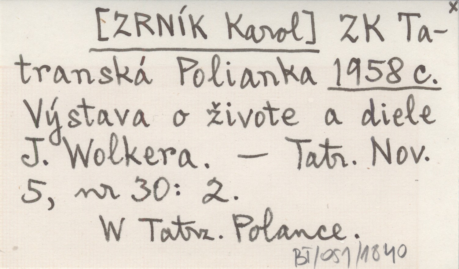 ZK Tatranská Polianka [ZRNÍK Karol] 1958 c Výstava o živote a diele J. Wolkera.