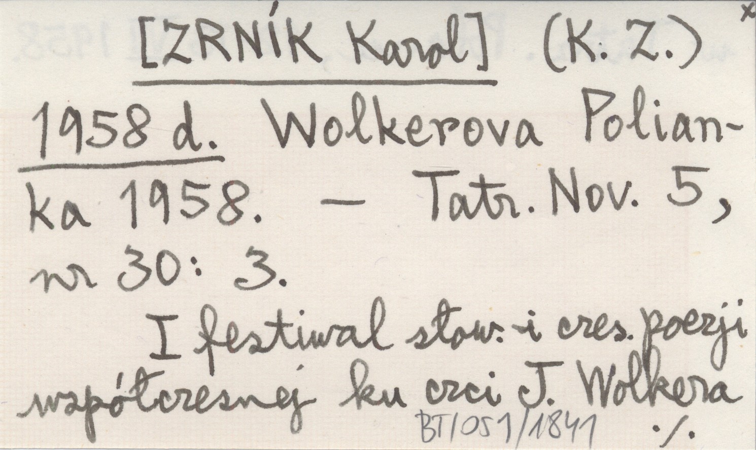 (K. Z.) [ZRNÍK Karol] 1958 d Wolkerova Polianka 1958.
