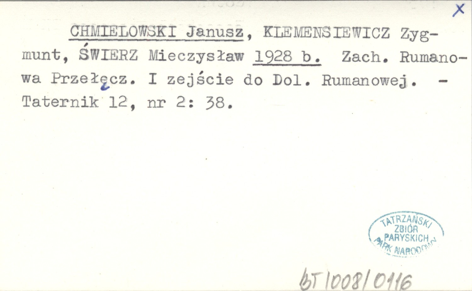 CHMIELOWSKI Janusz KLEMENSIEWICZ, Zygmunt. ; ŚWIERZ, Mieczysław. ; 1928 b Zach. Rumanowa Przełęcz. I zejście do Dol. Rumanowej.