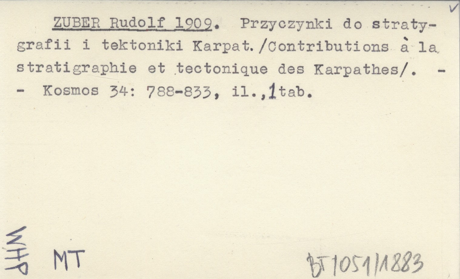ZUBER Rudolf 1909 Przyczynki do stratygrafii i tektoniki Karpat. (Contributions á la stratigraphie et tectonique des Karpathes).