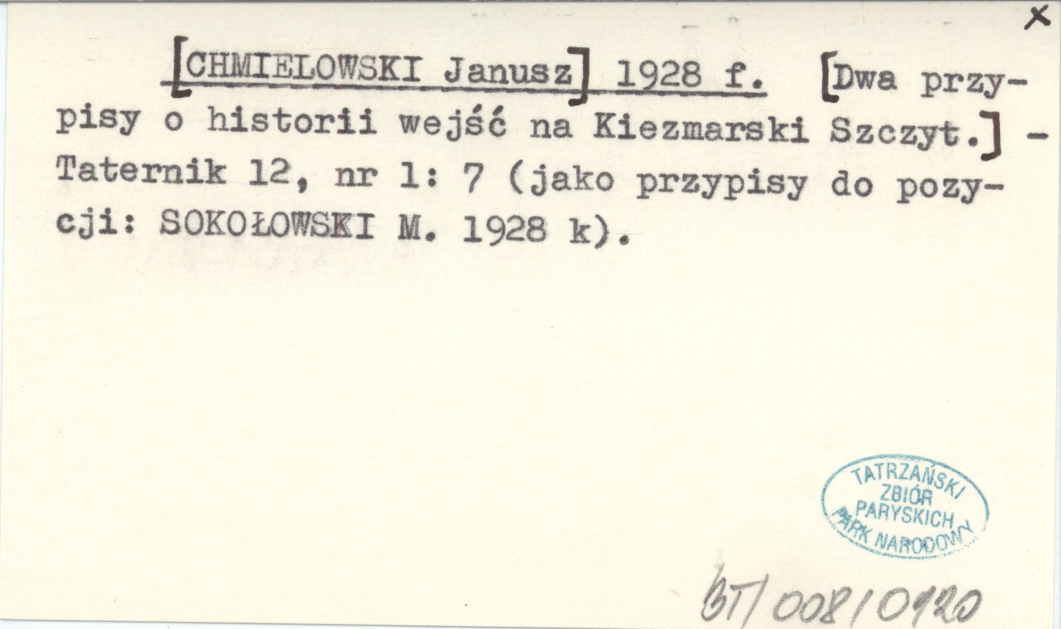 Taternik, 12, nr 1: 7. Jako przypisy do pozycji: SOKOŁOWSKI M. 1928 k.