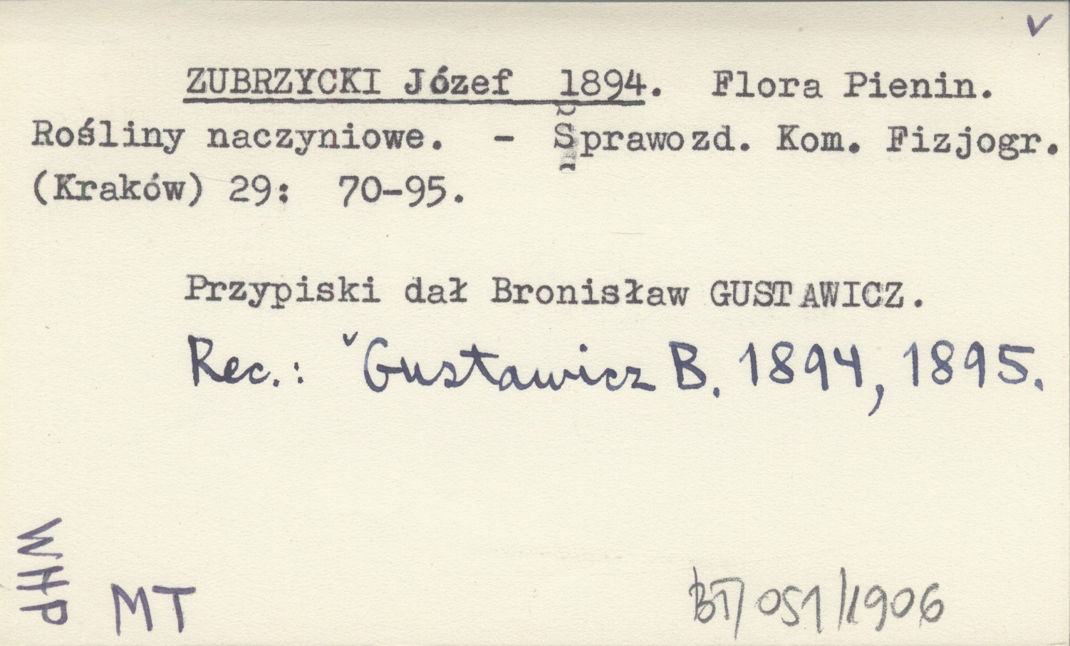Sprawozdanie Komisji Fizjograficznej (Kraków) , 29: 70-95. Przypiski dał Bronisław GUSTAWICZ. REC: GUSTAWICZ B. 1894, 1895.