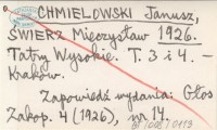 J. Ch. [CHMIELOWSKI Janusz] 1928 Z materiałów do historii taternictwa. II. Lodowy Szczyt.