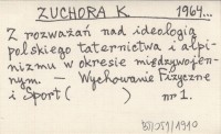 ZUCHORA K. 1964... Z rozważań nad ideologią polskiego taternictwa i alpinizmu w okresie międzywojennym.