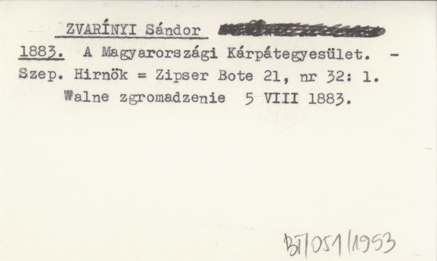 ZVARÍNYI Sándor 1883 A Magyarországi Kárpátegyesület.