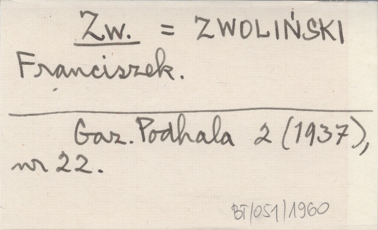 Zw. ZWOLIŃSKI Franciszek Gazeta Podhala 2 (1937), nr 22.