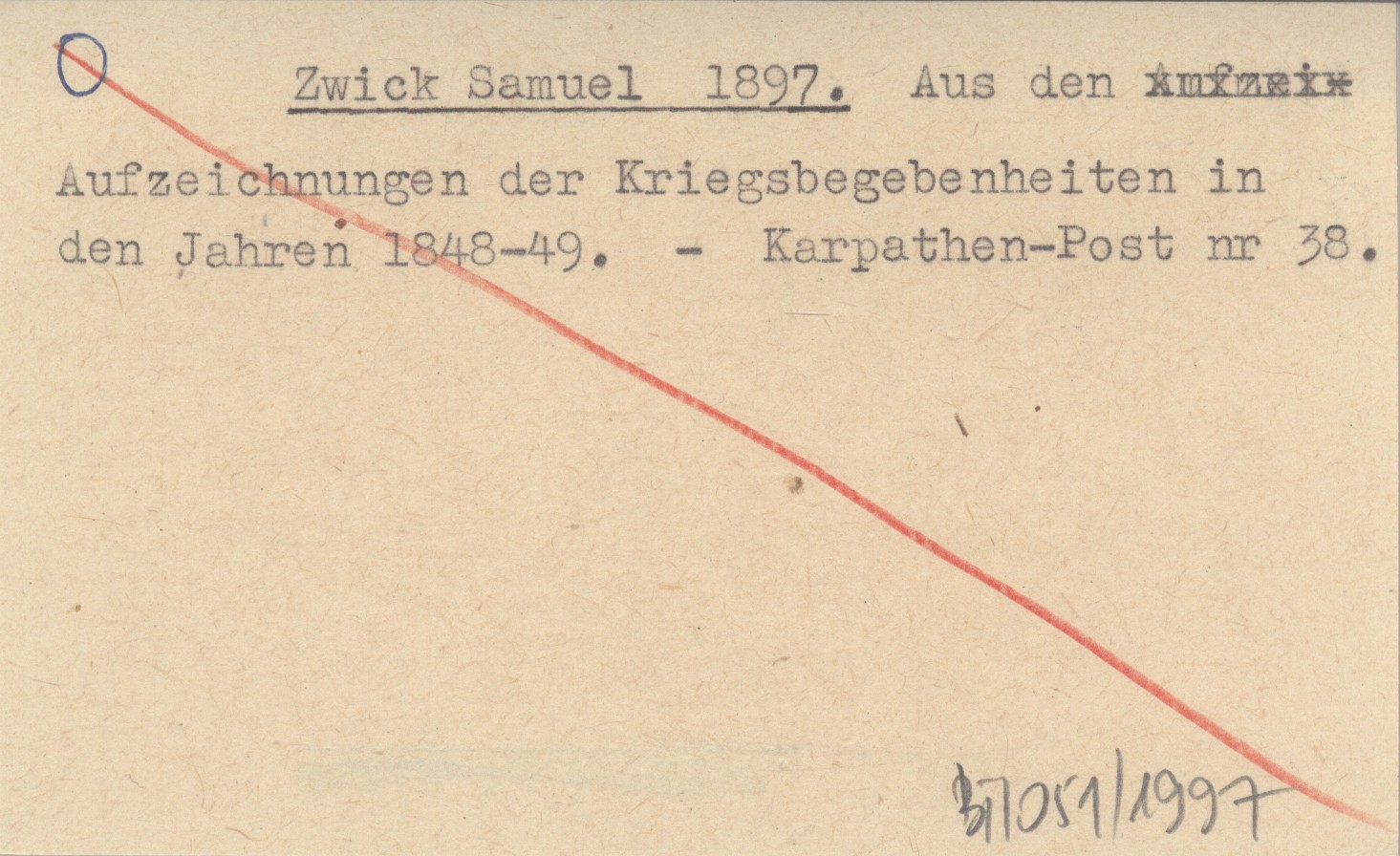 ZWICK Samuel 1897 Aus den Aufzeichnungen der Kriegsbegebenheiten in den Jahren 1848-49.