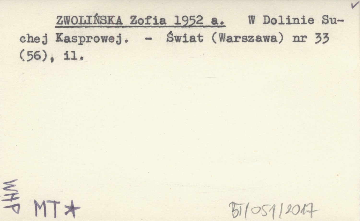 ZWOLIŃSKA Zofia 1952 a W Dolinie Suchej Kasprowej.