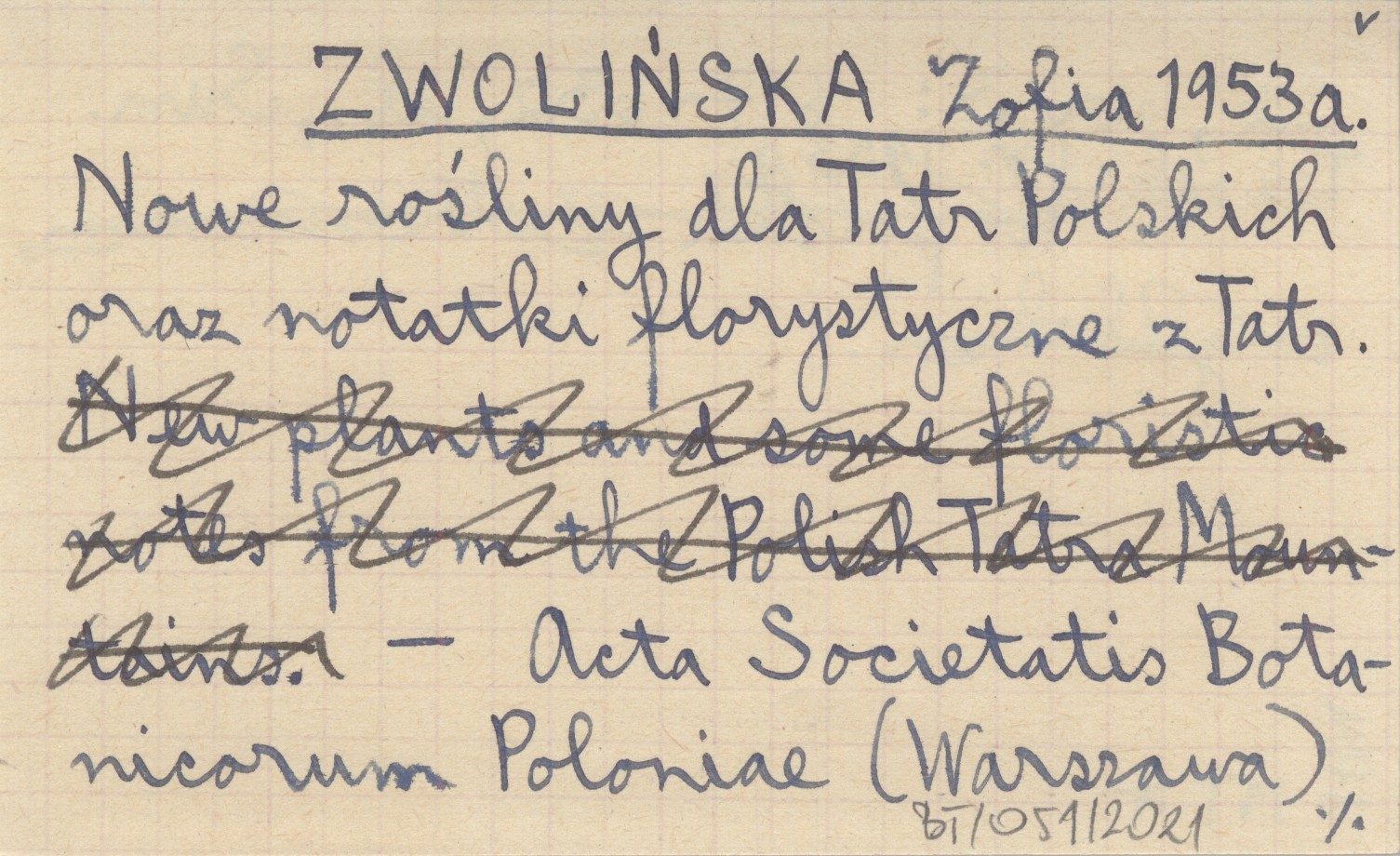 ZWOLIŃSKA Zofia 1953 a Nowe rośliny dla Tatr Polskich oraz notatki florystyczne z Tatr.