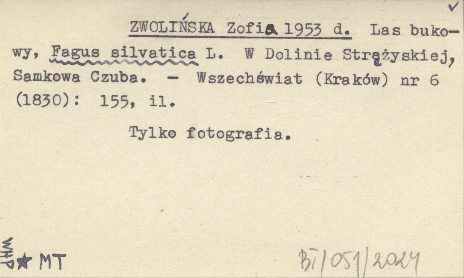 ZWOLIŃSKA Zofia 1953 d Las bukowy, Fagus silvatica L. W Dolinie Strążyskiej, Samkowa Czuba.