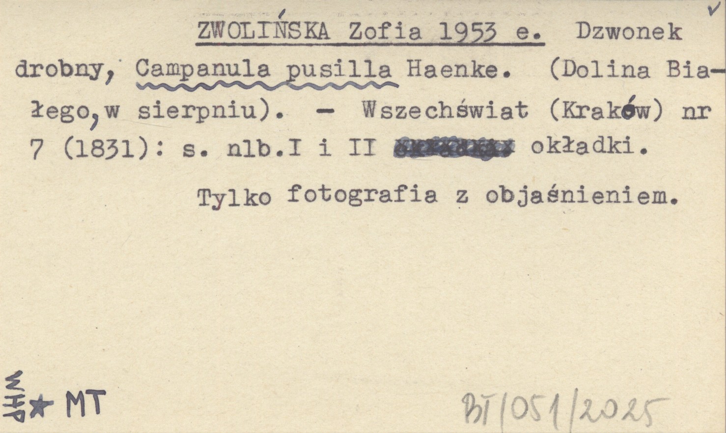 ZWOLIŃSKA Zofia 1953 e Dzwonek drobny, Campanula pusilla Haenke. (Dolina Białego, w sierpniu).
