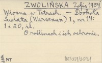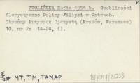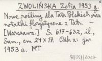 ZWOLIŃSKA Zofia 1953 g Nowe rośliny dla Tatr Polskich oraz notatki florystyczne z Tatr.