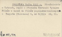 ZWOLIŃSKA Zofia 1955 c Niedźwiedzie w Tatrach, czyli o stosunku Centrali Wynajmu Filmów w Łodzi do filmów popularno-naukowych.