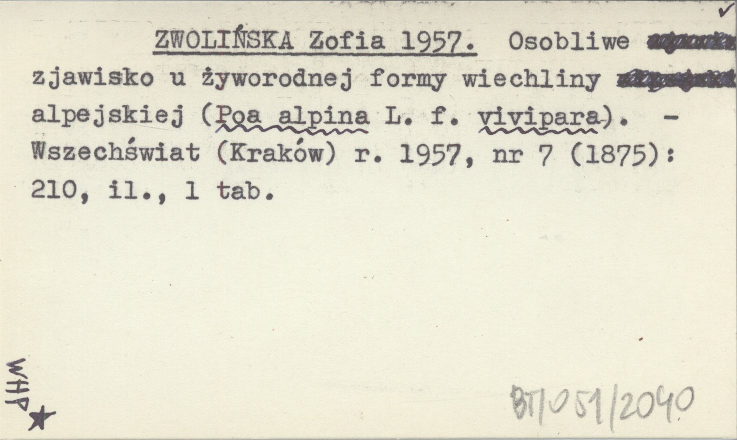 ZWOLIŃSKA Zofia 1957 Osobliwe zjawisko u żyworodnej formy wiechliny alpejskiej (Poa alpina L. f. vivipara).