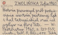 ZWOLIŃSKA Zofia 1960 Historia pierwszych prób podniesienia wartości pastewnej łąk i hal tatrzańskich oraz ich wpływ na florę Tatr.