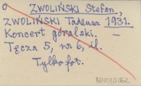 ZWOLIŃSKI Stefan ZWOLIŃSKI, Tadeusz. ; 1931 Koncert góralski.