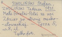 ZWOLIŃSKI Stefan ZWOLIŃSKI, Tadeusz. ; 1931 Małe Góralki - Polki ze wsi Zdziar po stronie czasko-słowackiej.