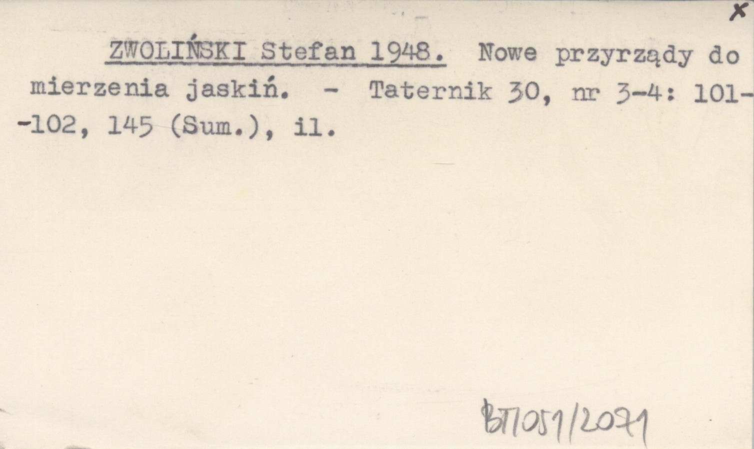 ZWOLIŃSKI Stefan 1948 Nowe przyrządy do mierzenia jaskiń.