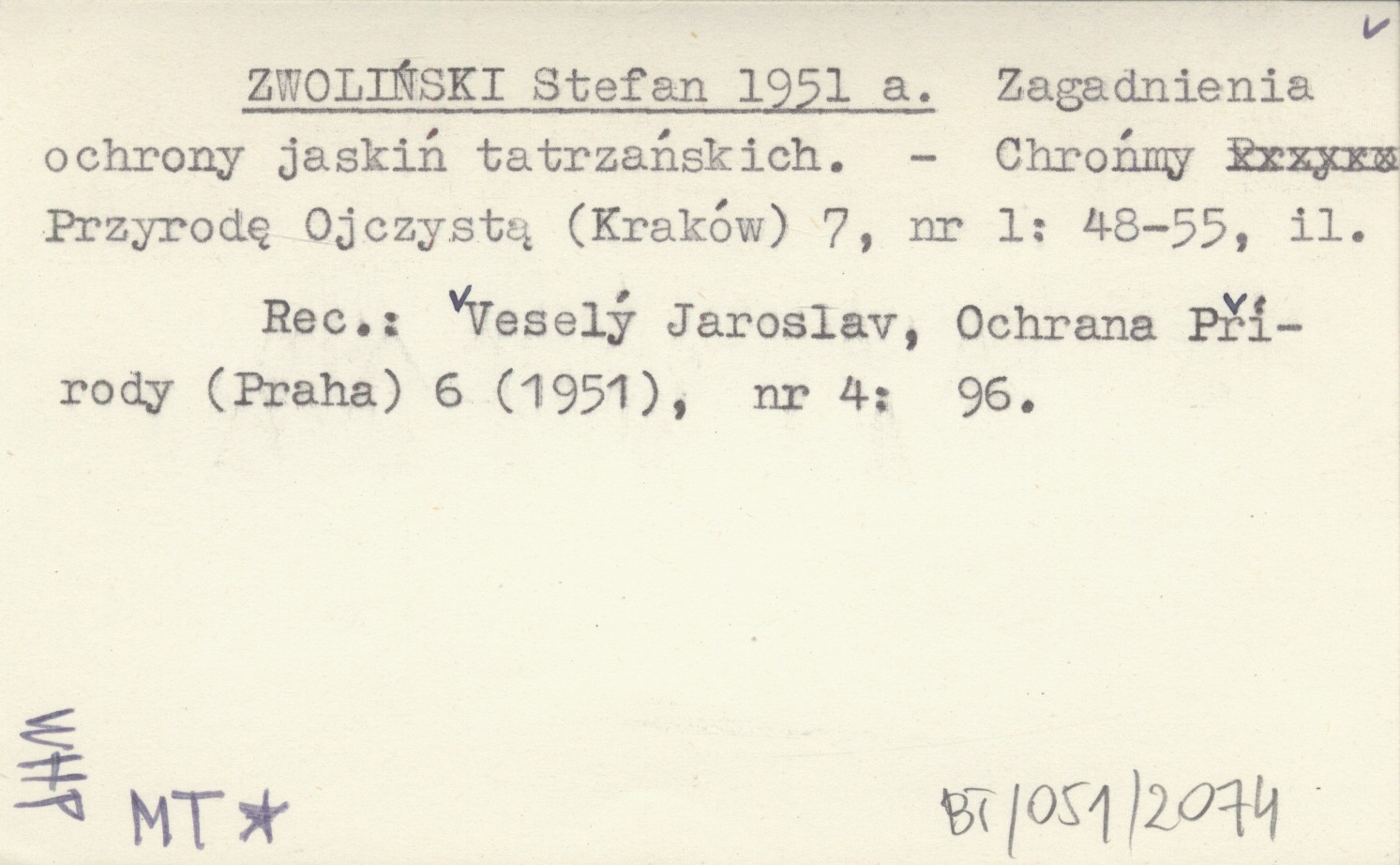 REC: VESELÝ Jaroslav, Ochrana Přírody (Praha) 6 (1951), nr 4: 96.