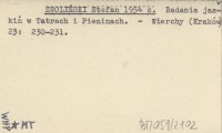 ZWOLIŃSKI Stefan 1954 c Badania jaskiń w Tatrach i Pieninach.
