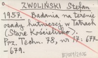 ZWOLIŃSKI Stefan 1957 Badania na terenie osady hutniczej w Tatrach (Stare Kościelisko).