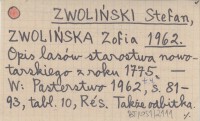 ZWOLIŃSKI Stefan ZWOLIŃSKA, Zofia. ; 1962 Opis lasów starostwa nowotarskiego z roku 1775.