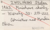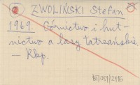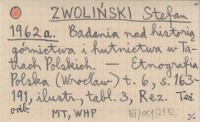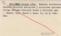 ZWOLIŃSKI Stefan 1965 Badania archiwalne Zespołu Historii Górnictwa i Hutnictwa Tatrzańskiego Zakładu Historii Nauki i Techniki PAN.