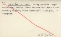 ZWOLIŃSKI T. 1912 Tatry polskie. Mapa wschodniej części "Tatr Zachodnich" wraz z zachodnią częścią "Tatr Wysokich". 1:37 500.