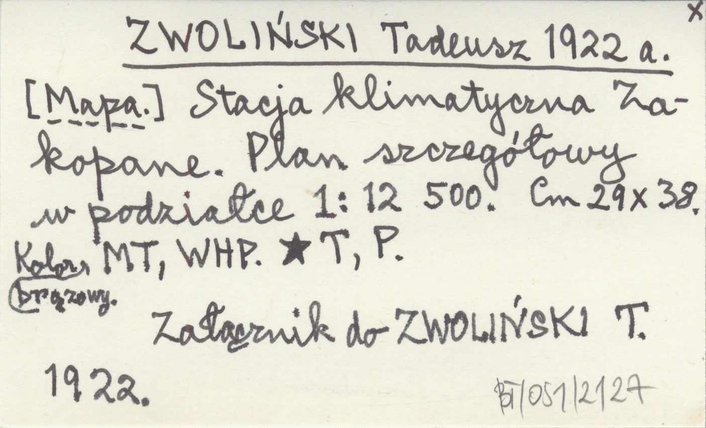 ZWOLIŃSKI Tadeusz 1922 a [Mapa.] Stacja klimatyczna Zakopane. Plan szczegółowy w podziałce 1:12 500.