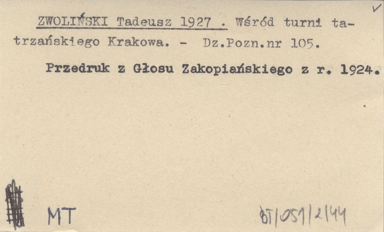 Dziennik Poznański, Nr 105. Przedruk z Głosu Zakopiańskiego z r. 1924.