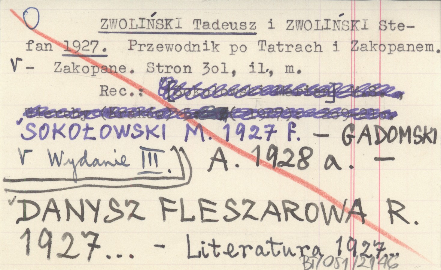WYD: 3 Zakopane , 301 s., il., mapa. REC: SOKOŁOWSKI M. 1927 f ; GADOMSKI A. 1928 a ; DANYSZ-FLESZAROWA R. 1927... ; Literatura 1927... ;